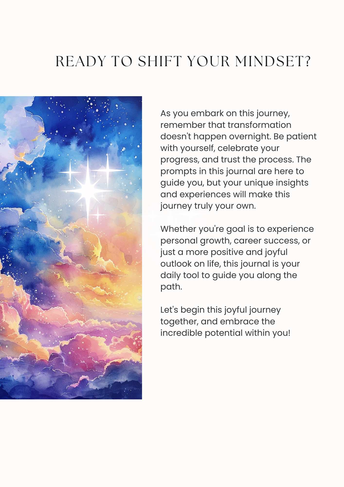This journal is your companion on a transformative journey to shift your mindset and embrace joy in every moment.