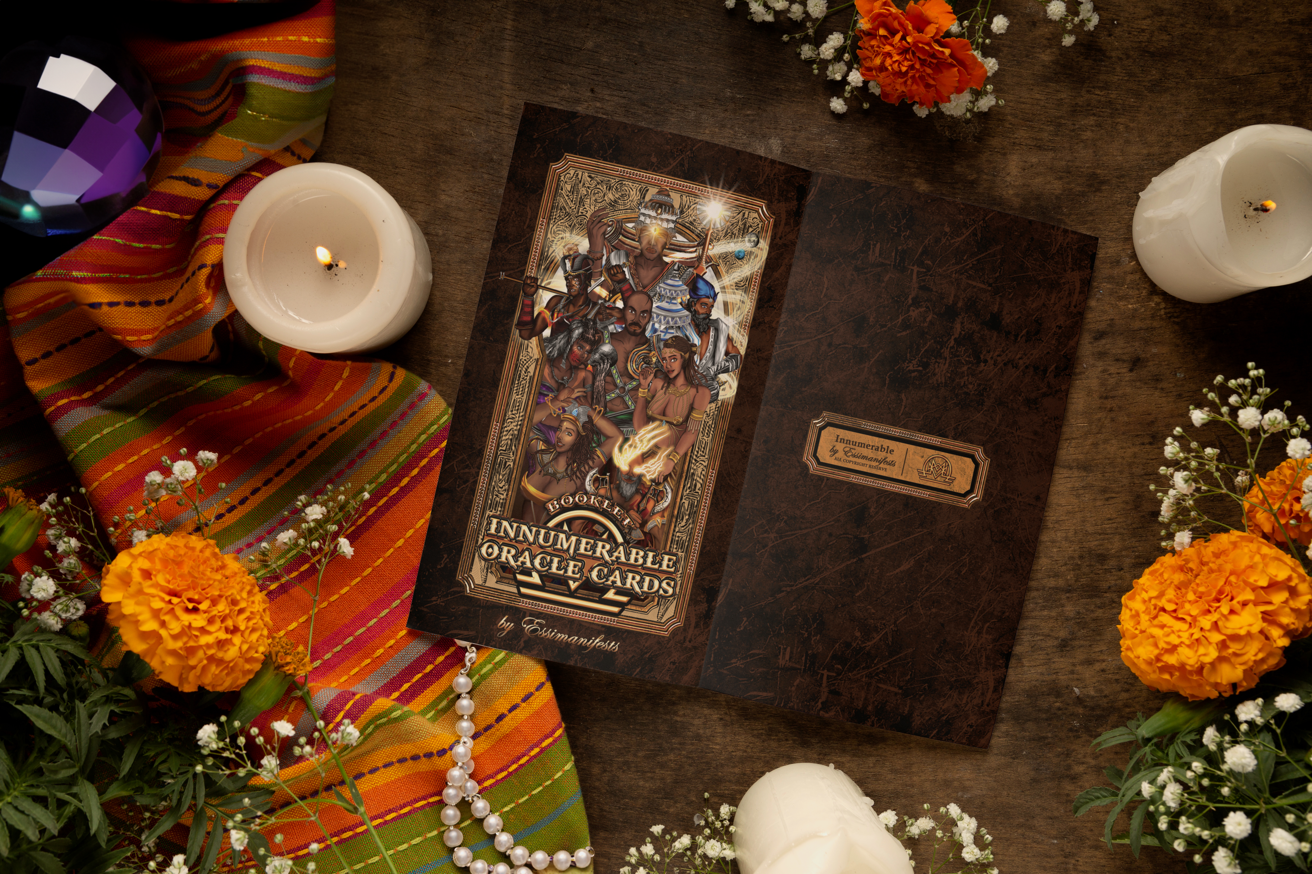 The INNUMERABLE oracle deck is a captivating collection of 8 cards, each spotlighting the most potent African gods and goddesses. This remarkable deck is the cornerstone of a trilogy that beckons you to embark on a journey with the 400+ divine entities. These cards seamlessly integrate into readings alongside Tarot decks and can be employed to craft unique spreads, offer daily guidance, and provide concise one-card advice. Each card features a compelling image of an African god or goddess, with their individual meanings thoughtfully expounded upon in the accompanying booklet.